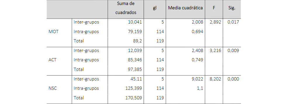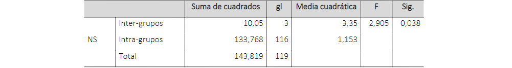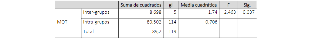 Luego de analizar los factores estudiados aquí, y los cuales se tomaron como factores dependientes respecto a las variables demográficas (independientes), se procedió a hacer análisis de Anova de un factor, siguiendo un nivel de confianza del 95 % y un nivel de significancia del 0,05, de manera que se pudiera señalar si hay alguna relación entre estas variables dependientes e independientes, con base en las medias.