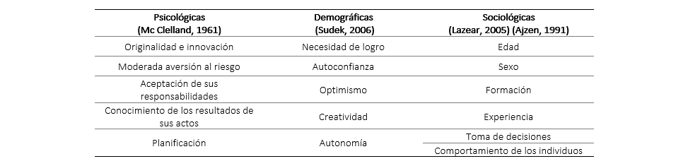 Entre los principales factores demográficos, se destacan la edad y el sexo, formación y experiencia (Fayolle, Vernier & Djiane, 2004), consideran que los rasgos demográficos sobresalen por su importancia en la toma de decisiones estratégicas. En ese sentido, McClelland (1961), identifica tres principales rasgos: la motivación al logro, el grado de propensión al riesgo y el control interno.