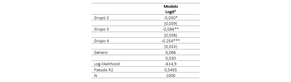 En el Grupo 2 (ver Figura 2), cuando a los individuos se les dieron respuestas cerradas donde explícitamente se incluyó la opción ‘bajar’ precios, siguiendo el modelo planteado en el punto anterior, la probabilidad de que la gente subiera el precio disminuyó un 3 % en relación al Grupo 1 (Control). En otras palabras, la probabilidad de que existan comportamientos egoístas se redujo, pero muy levemente, porque el resultado no fue estadísticamente significativo.