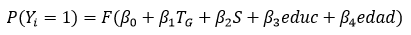 S: variable dummy que toma el valor “1” si la observación corresponde a una persona de género masculino y “0” si corresponde al género femenino