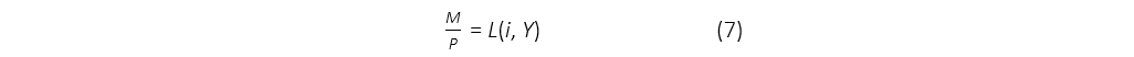 La demanda agregada (DA) no sólo considera el equilibrio del mercado de bienes, también supone que el mercado de dinero se encuentra en equilibrio, en el cual la oferta de saldos reales (M/P) es igual a la demanda de circulante (L).
