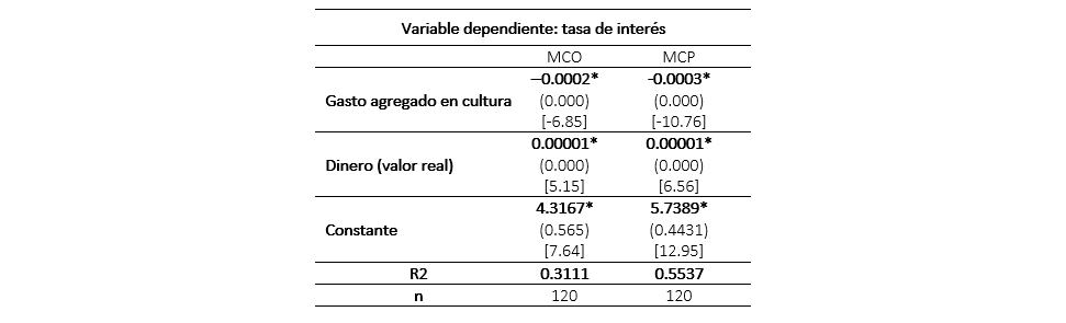 Si bien la propuesta de Dornbusch, Fischer y Startz (2004) es establecer una tasa de interés desde una función de demanda agregada (donde los mercados de bienes y de dinero se encuentran en un nivel de equilibrio), su cálculo para cultura debe ser una propuesta tal y como se muestra en la Tabla 3.