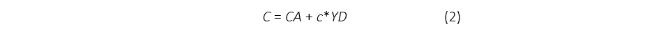 donde CA es el consumo autónomo, YD es el ingreso disponible y c es la propensión al consumo.