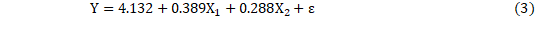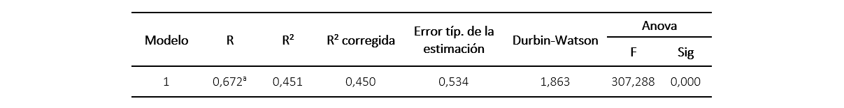 Por último, es importante presentar la ecuación de regresión lineal múltiple que representa los coeficientes y sus betas no estandarizadas para efectos del modelo, de acuerdo a (2) y (3).