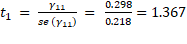 (1)Ho is rejected if `t_1 ≥` t-table.