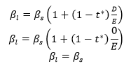 `βl`: Beta apalancada que representa básicamente una medida de volatilidad del activo en estudio ante la variabilidad del mercado. La beta se calcula al dividir la covarianza correspondiente a las rentabilidades del mercado y del activo entre la varianza de la rentabilidad del mercado.