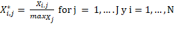To normalize the values of the variables using a Likert scale from 1 to 5, where 1 indicates that the variable is of little relevance and 5 means that it is relevant (see Equation 1), we used the following equation:
