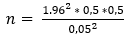 La muestra de turistas para esta investigación fue de 384 individuos, la cual fue calculada a través de la aplicación de la fórmula estadística comúnmente utilizada al trabajar con poblaciones no conocidas, considerando una probabilidad de ocurrencia del 50%, 5% como máximo aceptado de error de estimación y nivel de confianza de 95% (valor crítico 1,96). Si bien se pudo acceder al número de turistas que visitaron Santa Marta en el año 2020, esta cifra se encontraba afectada por las restricciones a los viajes vigentes durante la pandemia generada por el SARS-CoV-2, por lo que se tomó la decisión de no utilizar esa cifra como tamaño conocido de la población. El cálculo detallado puede apreciarse en (1), (2) y (3):