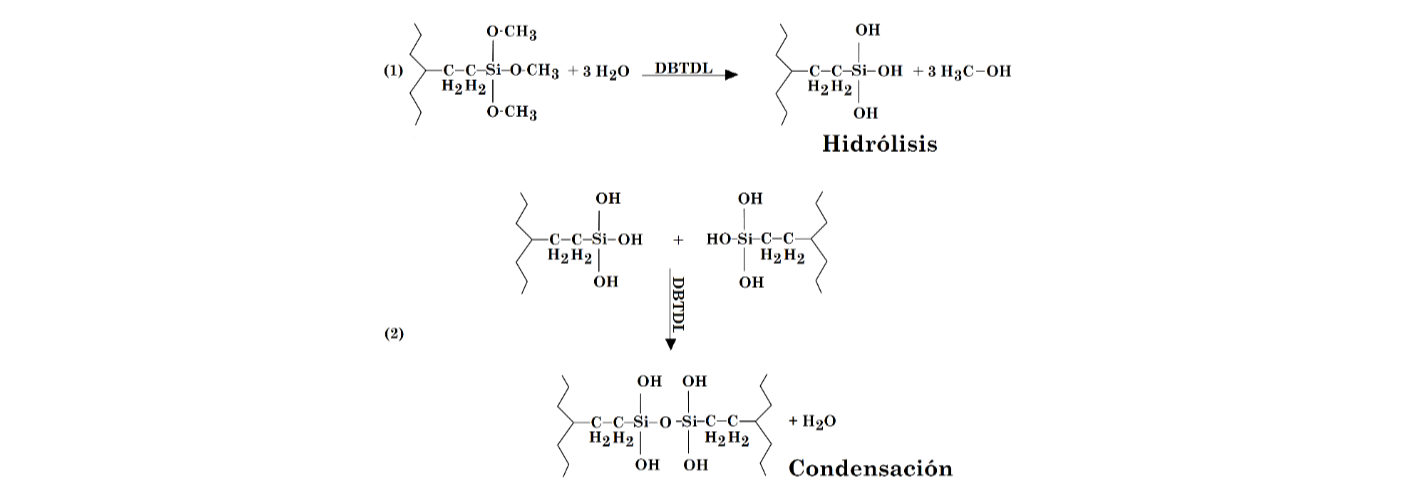 Para la fabricación del LLDPE injertado primero se efectuó la infusión del silano en el material, mediante una mezcla manual utilizando un recipiente plástico durante 10 minutos; posteriormente se dejó reposar la mezcla por 24 horas antes de llevar a cabo la reacción de grafting (injertado) en el Lab-Compounder Brabender. Esta reacción se lleva a cabo sin que se presente entrecruzamiento, tal como se ilustra en la Fig. 1. El injerto del LDPE se realizó en tandas de 300 gramos.
