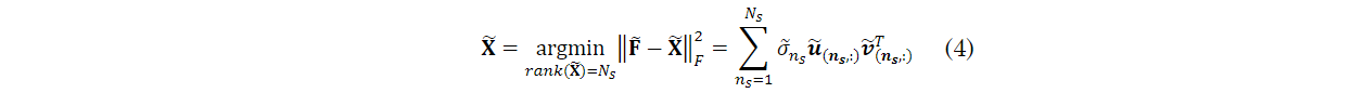 is the truncated SVD of 𝐅̃. When 𝐗̃ is estimated from 𝐅̃, the true signal is 𝐗= 𝐗̃𝚺1/2. Since there is a correlation between bands, the spectral correlation can be removed successfully using multiple linear regression by estimating the diagonal matrix 𝚺 [17].