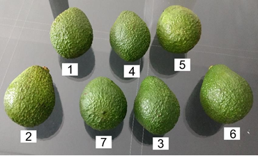 The Hass Avocados were collected during the harvest season of October 2018. Seven samples were collected, which were cut from the peduncle, three millimeters away from the base of the avocado (see Fig. 1). The avocado farm is located in the town of Tona, Santander, Colombia (7° 15° north latitude, 73° 03' west longitude) in the village Montechiquito. Such avocados were cut from the same crop and the same tree, and classified by the farmer, via visual and tactile inspection, into three different states: unripe, close-to-ripe and ripen.