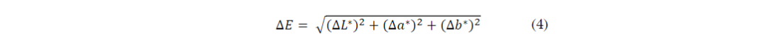 Δ𝐿∗=𝐿∗−𝐿0∗, Δ𝑎∗=𝑎∗−𝑎0∗, and Δ𝑏∗=𝑏∗−𝑏0∗, with 𝐿0∗,𝑎0∗ and 𝑏0∗ as the color parameter values of the first maturation day, and 𝐿∗, 𝑎∗, and 𝑏∗ as the color parameter values of the sample during the ripening day under analysis[26].
