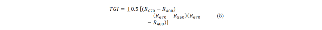 where R670, R480 and R550 correspond to the red, blue, and green bands, respectively