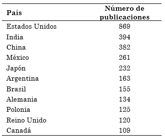 La producción de amaranto ha sido por muchos años una estrategia alimentaria de impacto social y cultural, lo que ha generado que países como China, India, Estados Unidos, Argentina, Perú, México, Bolivia y Ecuador sean los mayores productores de este pseudocereal; aspecto que se refleja en el interés académico y científico de sus semillas desde la primera publicación en 1912 según la base de datos Scopus (Tabla 3).