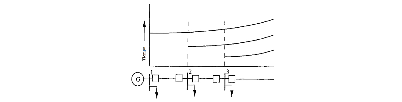 La coordinación de protecciones direccionales de sobrecorriente en sistemas de potencia debe cumplir con un criterio de selectividad entre ellas. Esto significa, que los relés no deben operar cuando existan contingencias fuera de su área de actuación; es decir, cada relé tiene un rango de magnitud de corrientes definidas en las que debe operar en cierto instante de tiempo, y son esquematizados en curvas de tiempo inverso de actuación. Los cuatro relés se definen como direccionales, razón por la cual solo operan en un sentido, dependiendo de su ubicación.