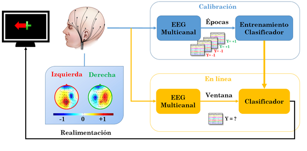En la actualidad, existen diversos tipos de BCI, dependiendo de la técnica de adquisición, del tipo modulación cerebral particular que se utilice y del problema de rehabilitación propio en cada paciente. En particular, la interfaz cerebro-computador no invasiva electroencefalográfica, EEG, basada en imaginación motora, miBCI (del inglés: motor imagery Brain-Computer Interface), es considerada una de las más apropiadas para rehabilitación motriz de miembros superiores [