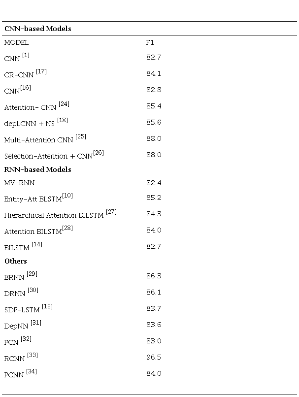 Based on the literature review above, with better performance architecture for RE tasks is CNN [