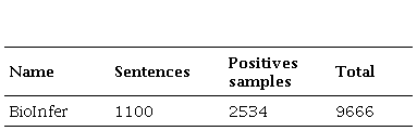 In turn, in BioInfer, we used the Protein-Protein interaction task to find semantic relations in the sentence “snf11 a new component of the yeast snf-swi complex that interacts with a conserved region of snf2”, where snf11 and snf2 are two named entities that represent proteins.