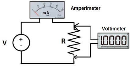 Fig. 2 shows the assembly suggested to students, which includes DC power supply, ammeter, voltmeter, and resistance, whose value must be determined.