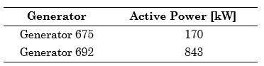 In this operation scenario, the electrical network has the new DG sources. Industrial nodes 675 and 692 have their DG systems operating. A previous research investigation indicates that the maximum power injection of the new generation units should be guaranteed during grid analysis [