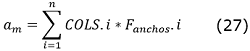 Restricción A2: ancho de la modulación. El ancho de la modulación de una fila, 𝑎𝑚, viene dada por las restricciones (27) a (30):