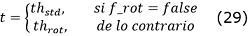 𝑡ℎ𝑟𝑜𝑡 es la tolerancia horizontal que representa el máximo espacio horizontal no cubierto cuando las formaletas están en posición rotada.