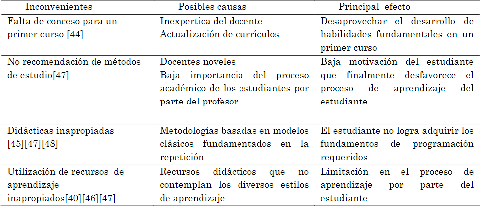 4.1.2 Inconvenientes en la enseñanza de la programación de computadores