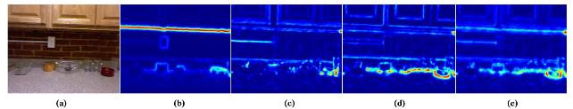 Edge information was used to describe 3D discontinuities and changes in surface orientations. In this study, a coarse geometrical scene segmentation was achieved by firstly computing 3D gradients from the 3D point cloud, as shown in Fig. 2 (b). For this purpose, we implemented the approximated model of 3D-edge detection proposed in [