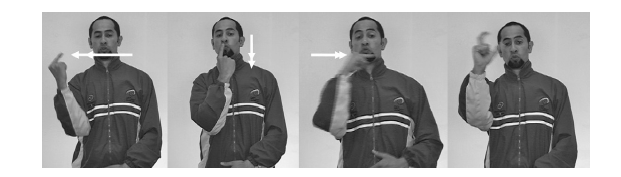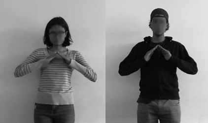 Por ejemplo, en la siguiente seña (Fig. 22) presente en la página, se ve que las manos de la persona que realiza el gesto se mueven horizontalmente, mientras que su torso se mantiene estático. La idea es tomar gestos donde parte de las manos se vea relacionada con el torso o incluso partes de la cabeza como el mentón o la sien [
