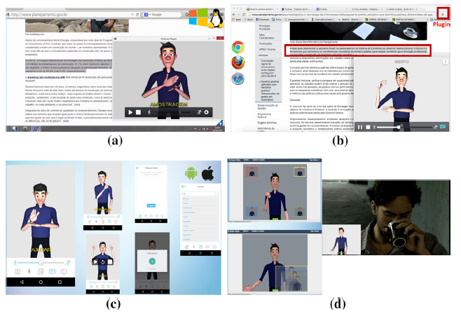 En Brasil, el uso de sistemas de reconocimiento de lenguaje de señas es más común, y se busca que desde diferentes fuentes se pueda transformar la información hacia las señas que son usadas por las personas sordas. En [