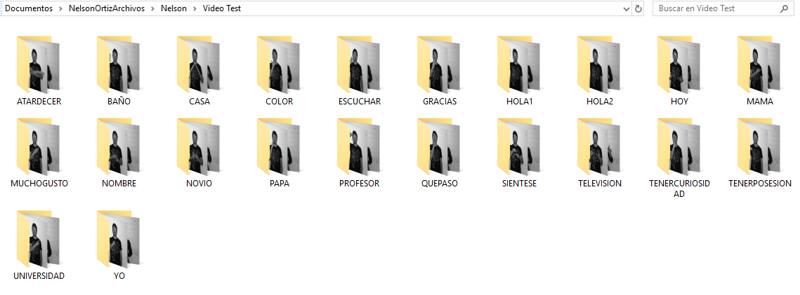 -Actividad 3: en un fólder especifico de Test, crear para cada seña un fólder con el nombre de cada seña y guardar en ellas las imágenes de las 6 personas haciendo estos gestos.