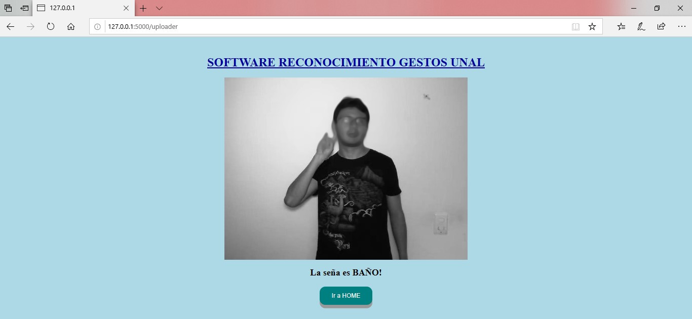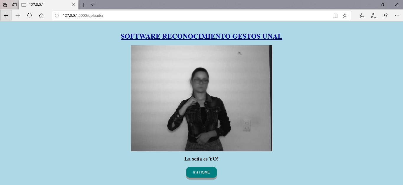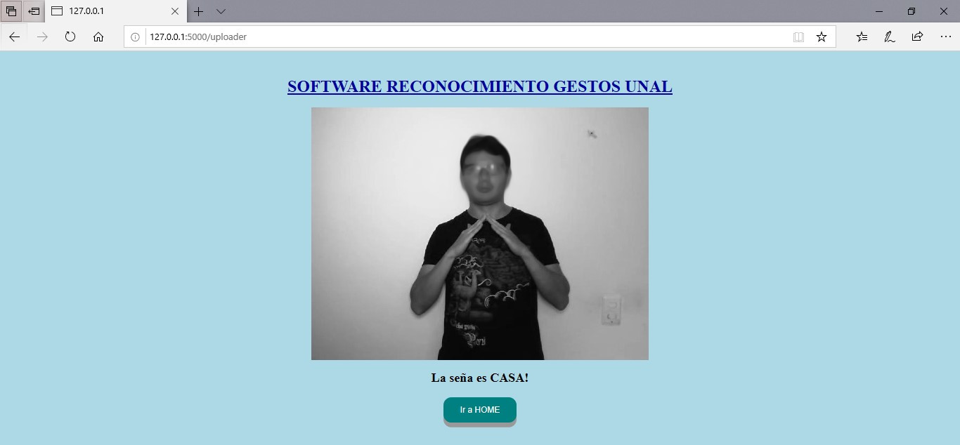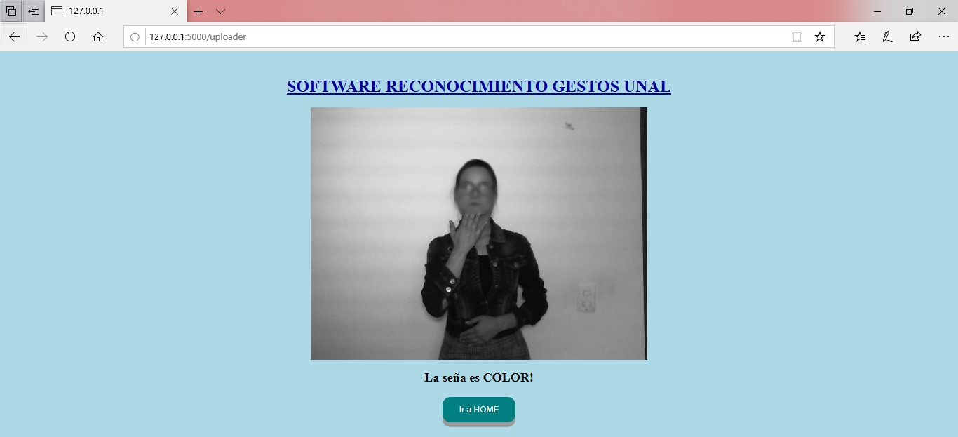 Como siguiente paso, se construyó un prototipo de software con la ayuda del Framework FLASK que permita hacer uso de los modelos construidos. De esta manera, un usuario final puede interactuar con los mismos de manera sencilla y a través de una Interfaz Gráfica de Usuario (GUI). Es importante resaltar que esta actividad se hizo con el fin de que los modelos fueran más sencillos de evaluar. Primero, se construye pensando en el intérprete como usuario experto de señas y conocedor de las necesidades de la población sorda.