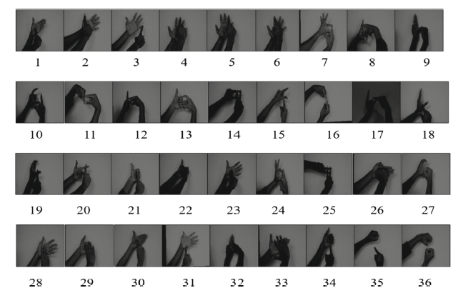 En esta investigación se construye el repositorio de datos desde cero, utilizando los números del 0 al 35, tratando como tal un problema de clasificación de 36 clases.