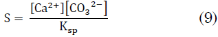 ⑬ Posterior a ello, se procede a calcular el índice de supersaturación (S), el cual se asocia al momento exacto en el cual ocurra la formación de la incrustación, como se expresa en (9):