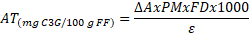 Finalmente, la concentración total de antocianinas monoméricas (AT) se expresó en términos de miligramo equivalente de cianidina-3-glucosido, mg C3G/100 g de Fruto Fresco (FF), de acuerdo a la ecuación (1) [
