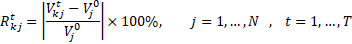 Where Vtkj is the voltage magnitude in the node j at time step t and contingency k, and V0j is the pre-fault initial voltage magnitude. Then an average severity index SIk is formulated to classify the magnitude of the deviations Rtkj by averaging them for each contingency k as in (2). If in any contingency case k, node j or period t no reliability standard (i.e., NERC/WECC, Grid codes [