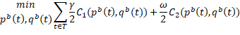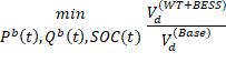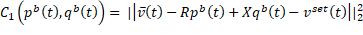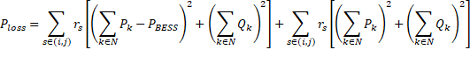 Where, γ and ω are defined as positive weights to balance voltage regulation (in C1) and power provision cost (in C2) respectively. Vectors pb and qb are the net power balance between generation and demand. This operation is constrained to SOC, BESS apparent power and node voltage limits, and SOC operation constraints.