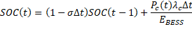 The terms PBESS-D (t) and PBESS-C (t) correspond to the power during discharge and charge in BESS.