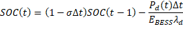 Besides power balance, the problem is also constrained by the maximum power (for discharge and charge), the SOC and the efficiencies in BESS.
