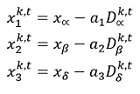 Then three positions are defined based on Dk∝, Dkβ, Dkδ as in (47).