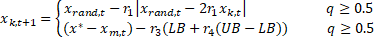 Where E0 initial energy based on the random parameter r6, ranging from minus one to one in each iteration t. Exploration and exploitation are performed differently depending on random parameters (from zero to one). During exploration, the random parameter q defines the exploration strategy to be carried out. If q is greater or equal to 0.5, then a strategy of perching based on random locations is performed. The exploration is based on the position of other hawks otherwise following the averaged position of all agents. The update of the position of the agents during exploration is executed following (59). The average position of the hawks is described by (60).