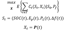 The optimization is later reformulated including a stochastic sequential decision process for intra-day operation strategy. The objective function is then defined in (22) to maximize the expected benefits after deciding based on initial states.