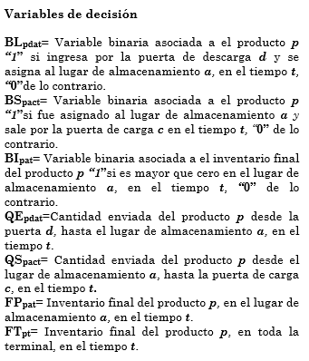 -Las cantidades de producto p que entran y salen de la terminal son consideradas en unidades de carga.