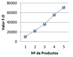 También se puede observar que a medida que el número de productos aumenta el valor de la función objetivo como se observa en la Fig. 3.