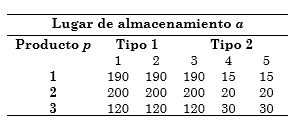 Esta sección presenta un ejemplo numérico para ilustrar las posibles aplicaciones del modelo propuesto para apoyar la asignación de productos a lugares de almacenamiento. Datos: