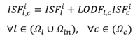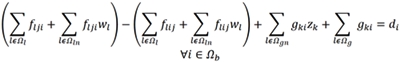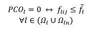 (4)Equations (4) and (5) represent over-load limits in lines for normal operation condition. Note that the power flow limits are considered not only for existing lines but also for new ones. Equations (6) and (7) represent overloads in power flow limits of lines under contingency.
