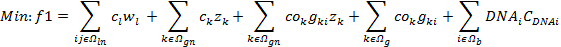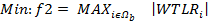 The objective functions considered in the proposed model are given by (1) and (2). The first objective function is composed of five terms. The first two terms indicate the cost of adding new transmission lines and small-scale generators, respectively. In this case, the binary variables Wl and zk are used to indicate the existence of new transmission lines and generators, respectively. The third and fourth terms indicate the operating costs of existing and new generators, respectively. The last term indicates the cost of unserved demand. Equation (2) represents the minimization of the maximum absolute value of the WTLR indexes, which are defined in the next sub-section. Note that this forces WTLR indexes to move towards zero. If such indexes are zero, it means that no overload is present, neither in the base case nor under any contingency.