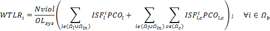 WTLR indexes are given by (3). Note that these indexes are computed once Wl and zk are specified. The terms used to compute the WTLR indexes are given by (4)-(10) [26]. They indicate the approximate change in the total overload of the system (in both, normal and contingency states) that would result from a marginal injection of 1MW in a given bus. Since they are based on systems’ injection shift factors, WTLR indexes can take either positive or negative values. The receiving ends of overloaded elements have negative WTLR indexes, which indicates that injecting power into these nodes produces counter flows that relieve the overload. Conversely, the emitting ends of overloaded elements have positive indexes, which indicates that injecting power into these nodes would worsen the overload. To reduce overloads in both normal and under contingency conditions, new elements must be added to the existing transmission network in such way that the magnitudes of the WTLR indexes are reduced. That is to say, if these indexes are equal to zero there are no overloads, neither in normal operation nor under contingencies.