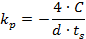 (22)Considerando que el tiempo de estabilización de un sistema de primer orden es aproximadamente ts = 4·t [19], [33] , la expresión se reescribe según (23) para permitir el diseño de kp a partir del tiempo de estabilización deseado para vpv , el cual depende del tiempo de perturbación Ta del P&O, según lo reportado en (24), para garantizar estabilidad [19], [27].