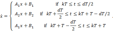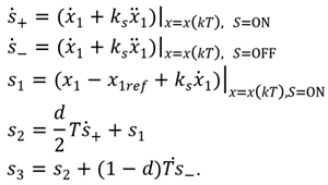 (8) Equation (8) is solved to obtain the duty cycle dk(kT) at each sampling time, which ensures the condition of zero average dynamics when applied to the system through switch S. The duty cycle was obtained in [9], [15] and can be expressed by Equation (9):